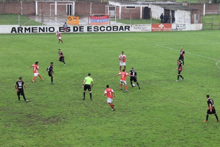 El gol de Cristian Peláez (tras una jugada preparada en un córner) le dio la apertura del marcador al elenco "Tricolor" de Ingeniero Maschwitz, cuando el partido recién estaba comenzado.