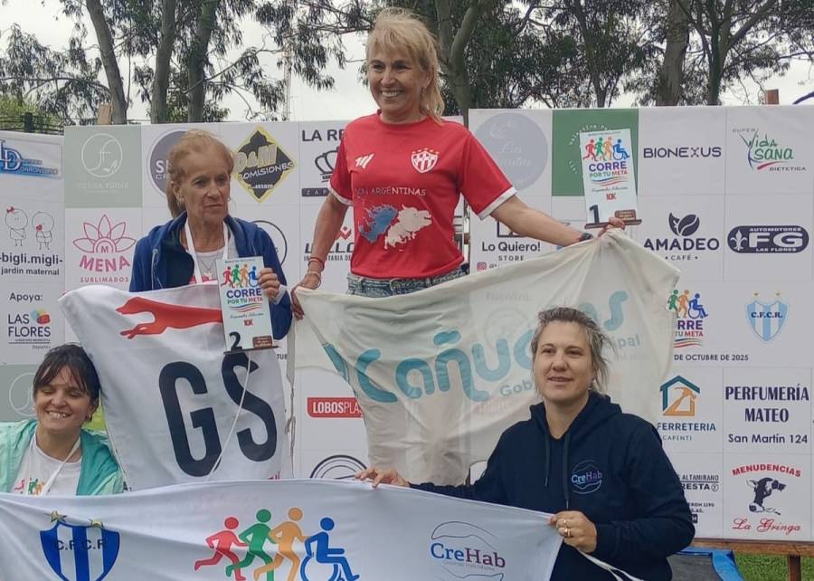 Mirta Domínguez, referente del atletismo, se ubicó en lo más alto en la carrera “Corre por tu meta” de Las Flores, en 10K, el domingo pasado.