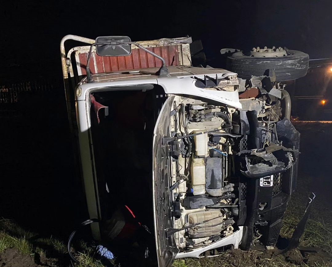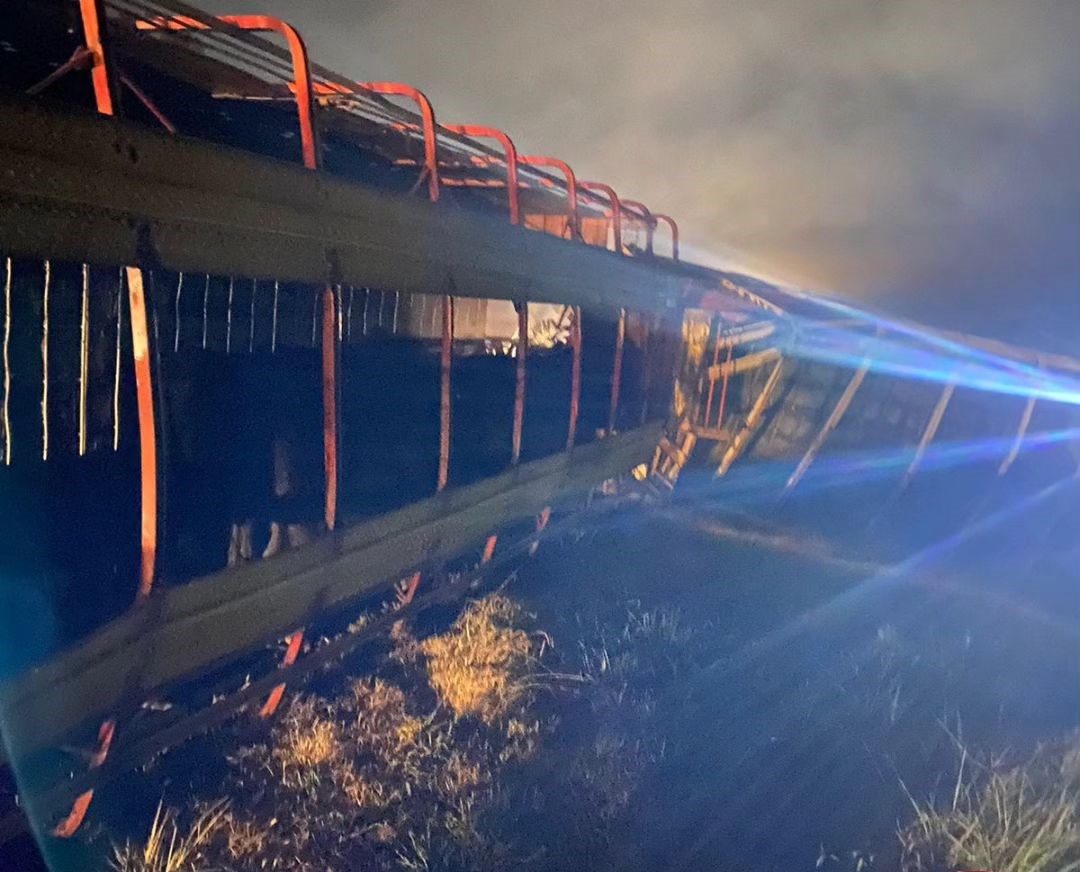 Por la colisión, parte del ganado falleció en el vuelco del Iveco.