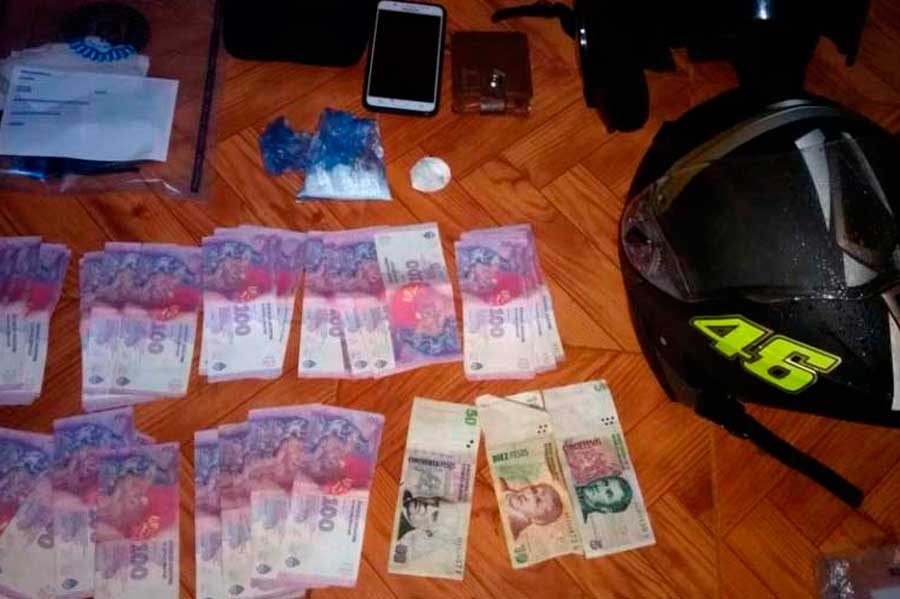 Los allanamientos con saldo positivo también tuvieron lugar en Progreso 141 de la misma localidad, donde se dio con un ladrillo de marihuana compacto, con un peso total de 835 gramos, dos cascos, guantes de motociclista, varios plásticos cobertores de motocicleta marca Honda y una pistola replica de Browgnin. Como resultado, se dispuso de la detención de Franco Simón Jara.