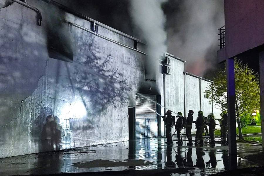 Por causas que se desconocen, el fuego comenzó en la noche del viernes en una extensa nave del predio del ex centro comercial "El Lago".