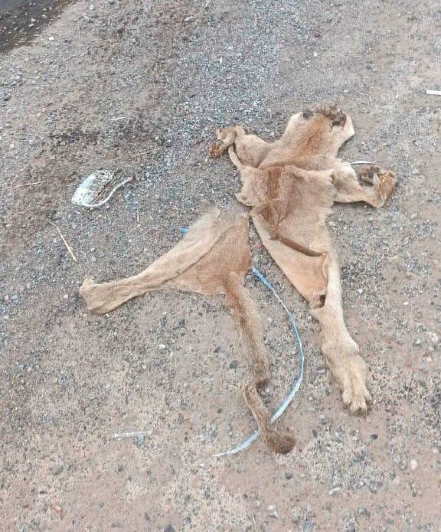 Durante las últimas horas, un vecino encontró el cuero de un puma en el kilómetro 92.500 de la Ruta 6, a muy pocos metros del acceso al Hospital Regional Cuenca Alta.