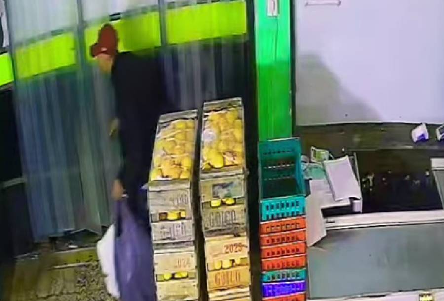 La primera entrada ocurrió cerca de las 3:00 de la madrugada, cuando el ladrón forzó el candado de la puerta principal. Ya en el interior del extenso local se acercó a la terminal de pago y en una bolsa de nylon empezó a meter los billetes que estaban dentro de la caja registradora. Se retiró minutos después con el dinero -no trascendió el monto- y un parlante grande que se usaba para poner música en el autoservicio de frutas y verduras.