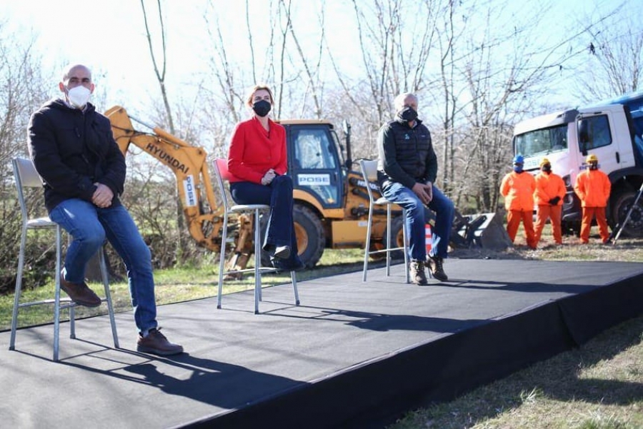 Firmaron las actas del inicio de obras, Gustavo Etchanchu, titular de la firma Pose S.A., y Alejandro Metro, representante de la empresa Leymer S.A., adjudicatarias de las obras del Parque Lineal, y la ampliación de la red de agua, respectivamente.