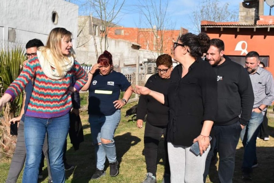 Faggioli, Zaracho y Klug recorrieron junto a la secretaria general de la agrupación De Frente, Marta Ferraro, los logros de la cooperativa que incluye una capilla, un jardín de infantes, una huerta agroecológica, la Casa de la Mujer Esther de Careaga, el taller textil, una futura panadería, el edificio de Desarrollo Social de la propia agrupación y una obra donde actualmente se construye un hogar de tránsito de menores.