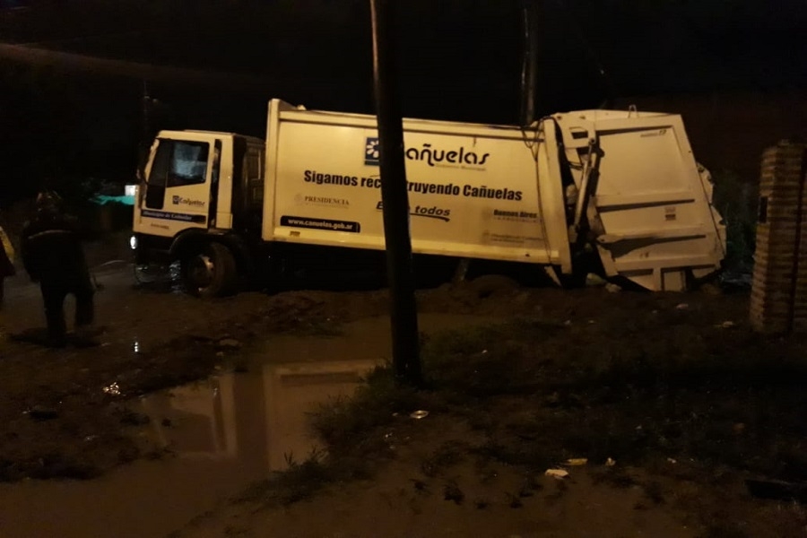 La sorpresa se adueñó de los vecinos del Buen Pastor cuando detectaron la imagen. Lo cierto es que el despiste sucedió mientras uno de los camiones municipales realizaba su recorrido habitual entre las calles Alberdi y la intersección con Hipólito Yrigoyen. Esta esquina se encuentra en proceso la obra de asfalto y saneamiento, lo que, sumado al gran caudal de agua caído durante la tarde, hizo de la calzada un verdadero fango