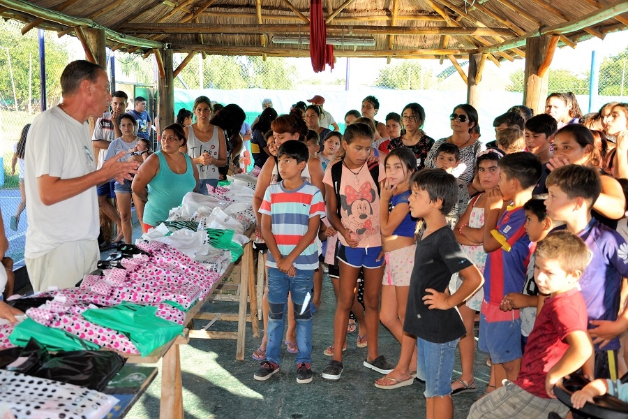 Los menores, acompañados por sus padres y madres, se congregaron en el natatorio para retirar de manos del mandatario un set confeccionado por el Gobierno municipal, que cuenta con los útiles necesarios para comenzar el período de clases con todas las herramientas de estudio.
