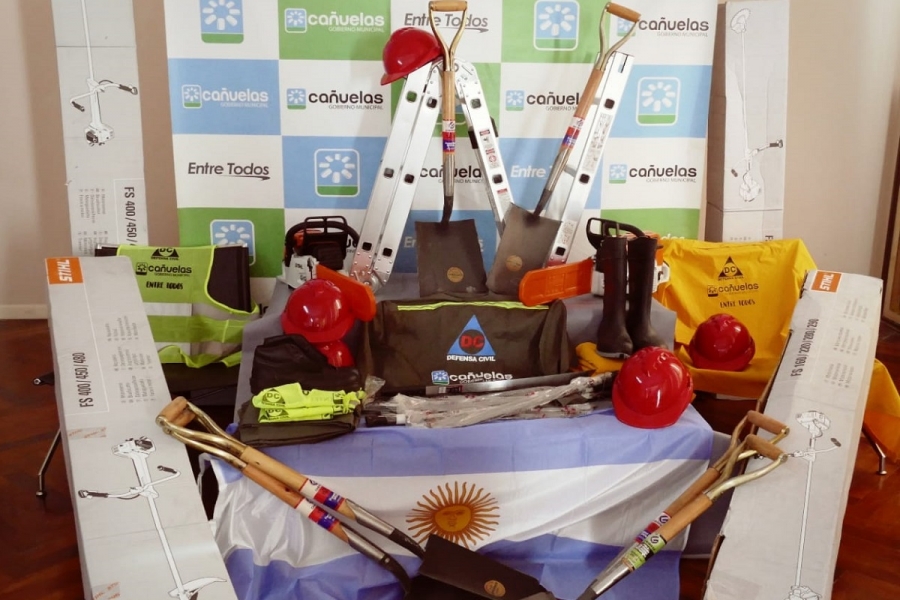 Este equipo de agentes de Defensa Civil y su director, Ricardo Aristegui, recibieron materiales de trabajo, destinados a fortalecer las tareas en el territorio y los planes de emergencia que se están congeniando con las distintas áreas del municipio e instituciones de la comunidad.