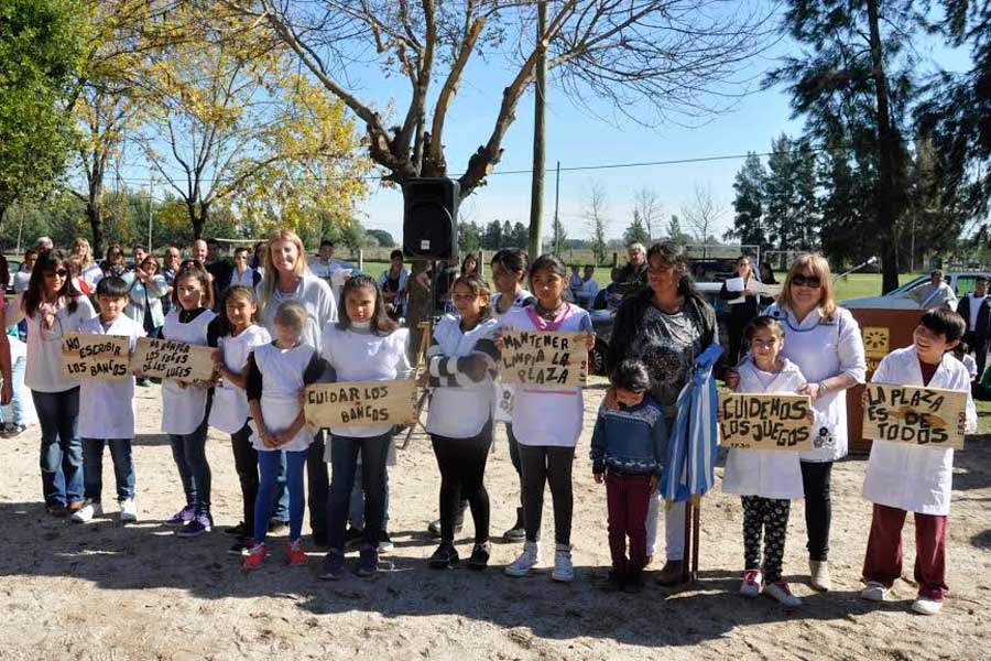 Los niños de la Escuela Primaria Nº30 concedieron carteles, construidos con sus propias manos, para ser instalados en la plaza de la Sociedad de Fomento de la localidad, con el propósito de promover e incentivar el cuidado y la limpieza en los espacios de disfrute y recreación comunitaria.