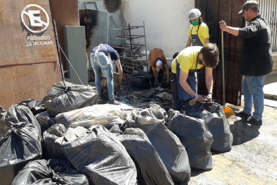 Según el testimonio de uno de los empleados que estaba abocado a las tareas de cocina notó que brotaban llamas desde el patio. Con el dueño del comercio y otro compañero corrieron a sofocar el fuego que se había generado en una pila de cajas de cartón que son acopiadas al aire libre, en un espacio abierto que conecta con un portón sobre A. Argentina, esperando que el cartonero pase a retirarlas.