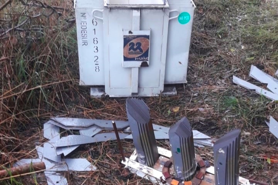 Ese día, por la noche, ladrones abordaron el transformador N°616328, ubicado a la vera de la ruta. Lo hicieron caer de unos cuatro metros de altura y una vez desmembrado por el impacto contra el piso le sustrajeron el cobre que el equipamiento tiene por dentro de la carcasa.